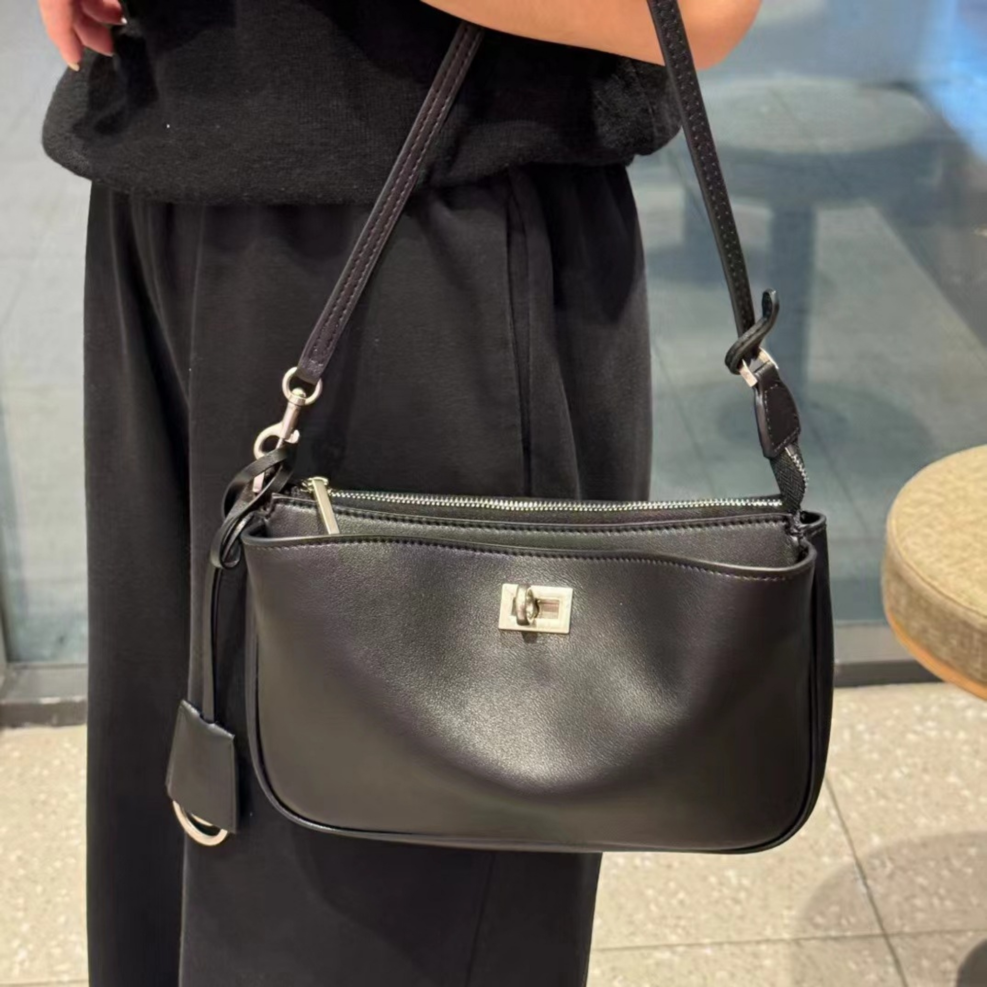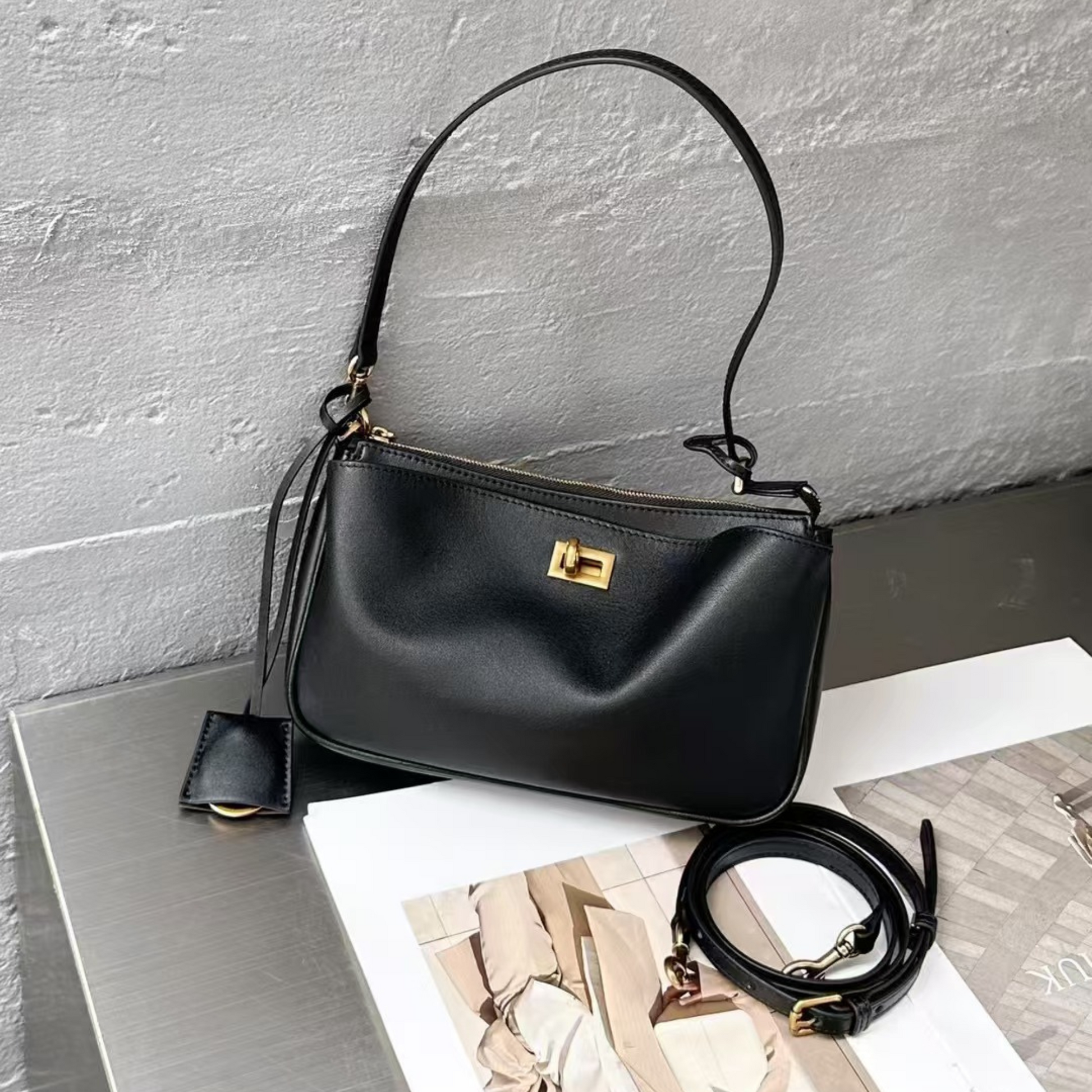 Versatile wear: top handle for a refined look, shoulder or crossbody for effortless movement.
